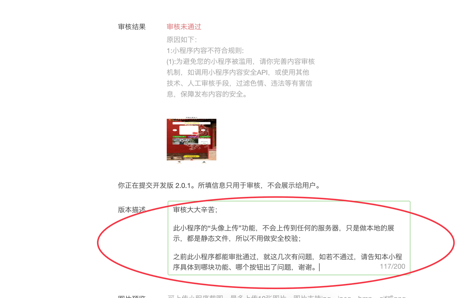 本地上传图片功能从小程序,今年9月份上线到12月23号都能审批通过,为什么就12月25以及后边的3次审核不通过?