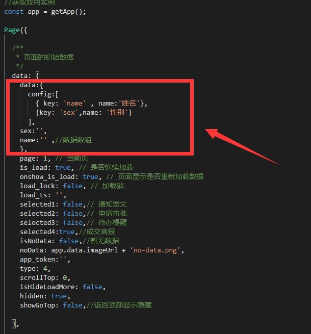 data:{config:[{key:'name',name:'姓名'}, {key:'sex',name:'性别'},],sex:'',name:''}<block wx:for-items="{{config}}" wx-key="{{index}}">
