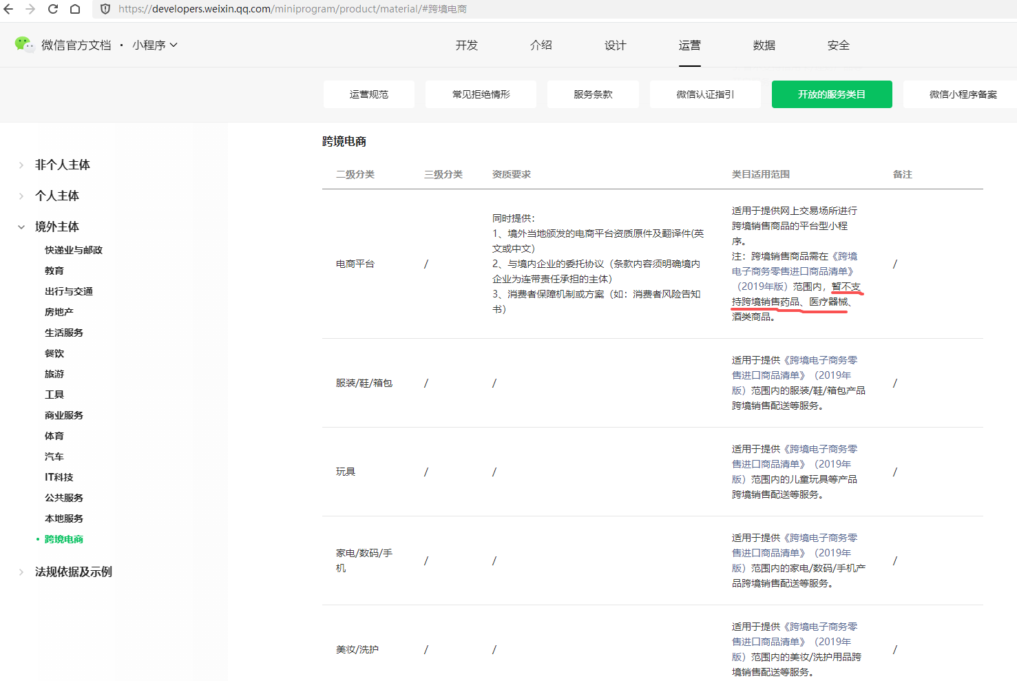 依据腾讯开放文档:https://developers.weixin.qq.com/miniprogram/product/material/#跨境电商