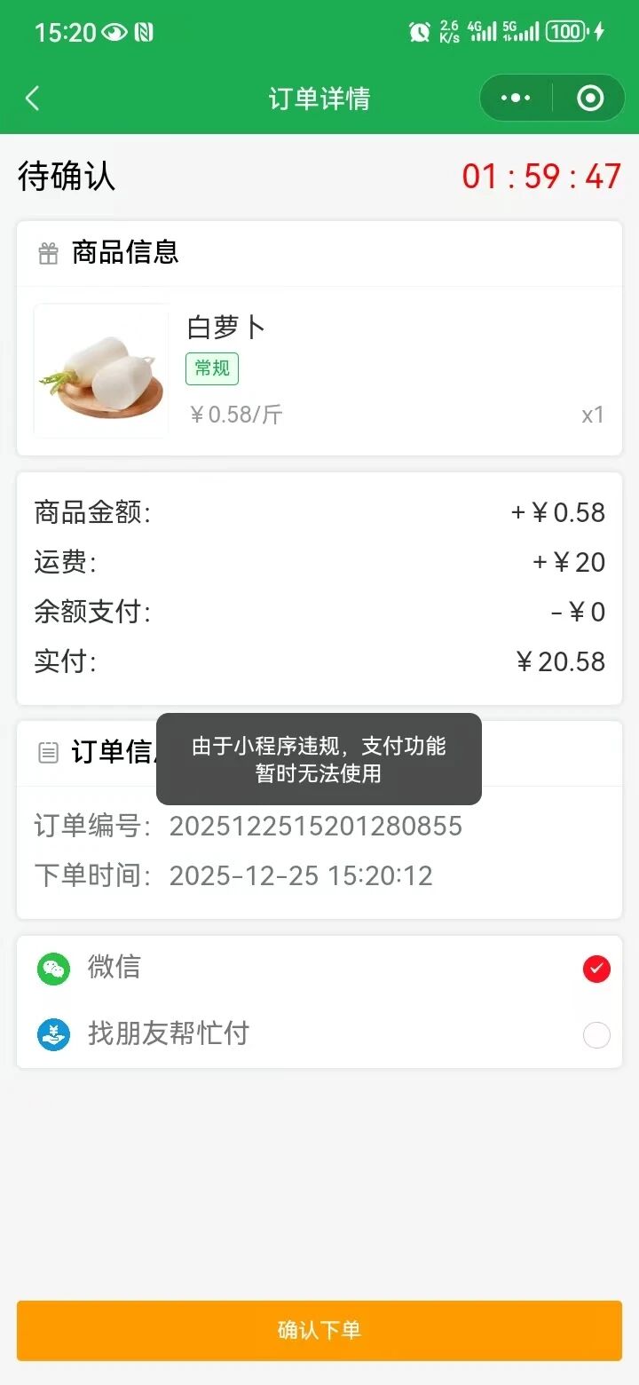 有一个小程序申请很久,最近开始使用,微信支付不了