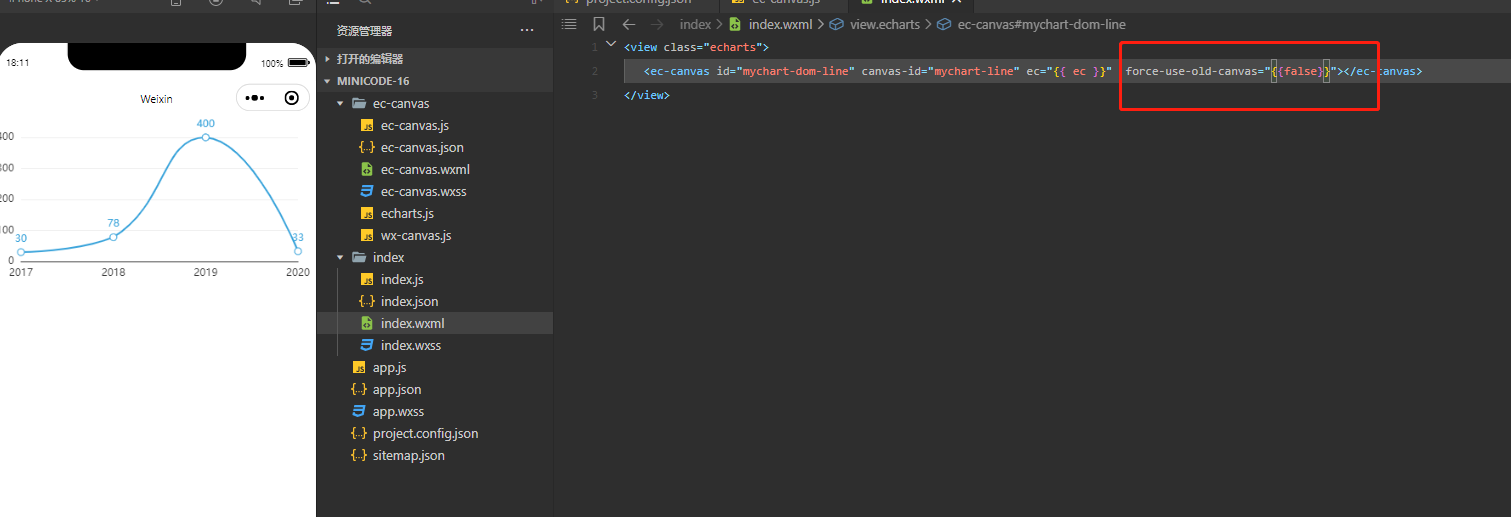 小程序使用echarts插件,数据没问题,但是不出图,也不报错?