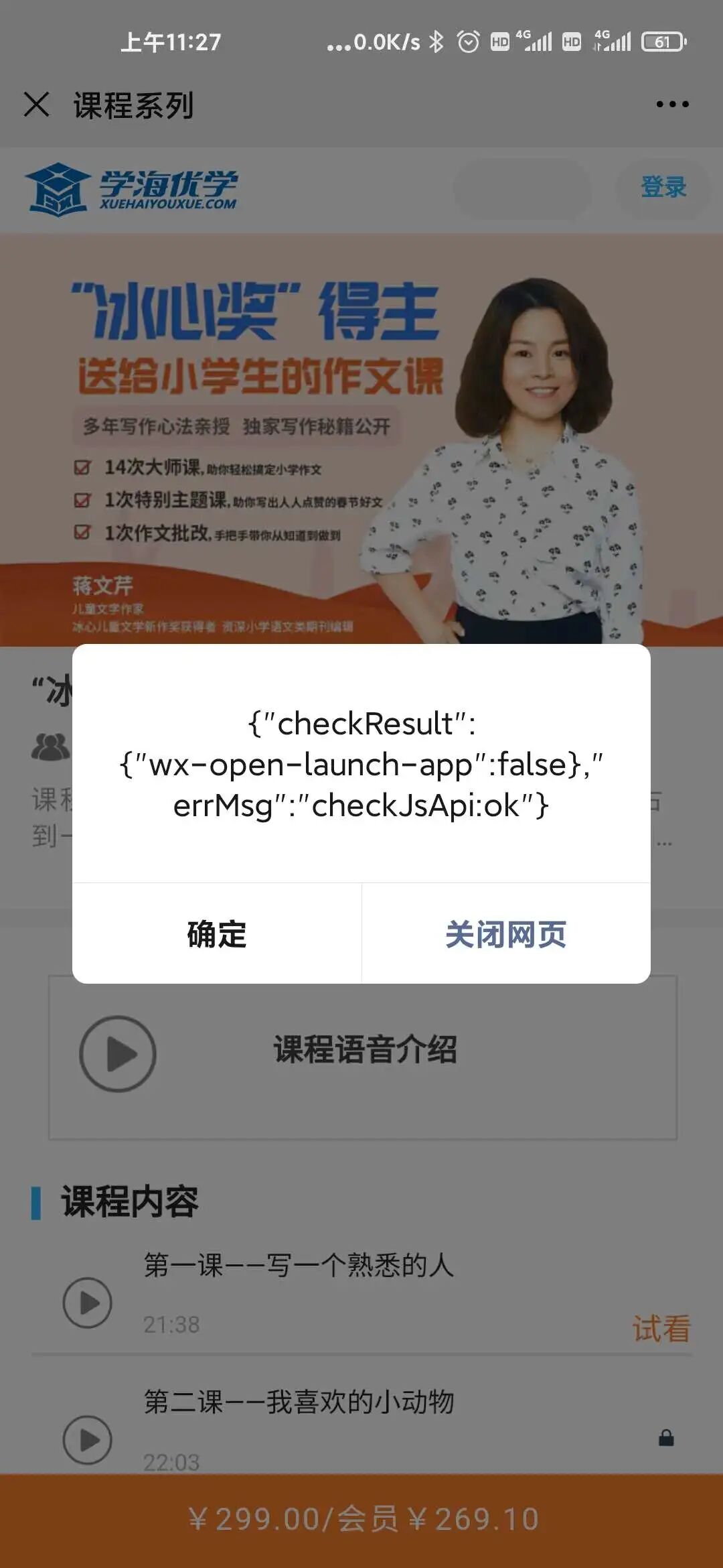 wx.config dubug为true时,弹框提示内容 "wx-open-launch-app false"是什么意思呢?