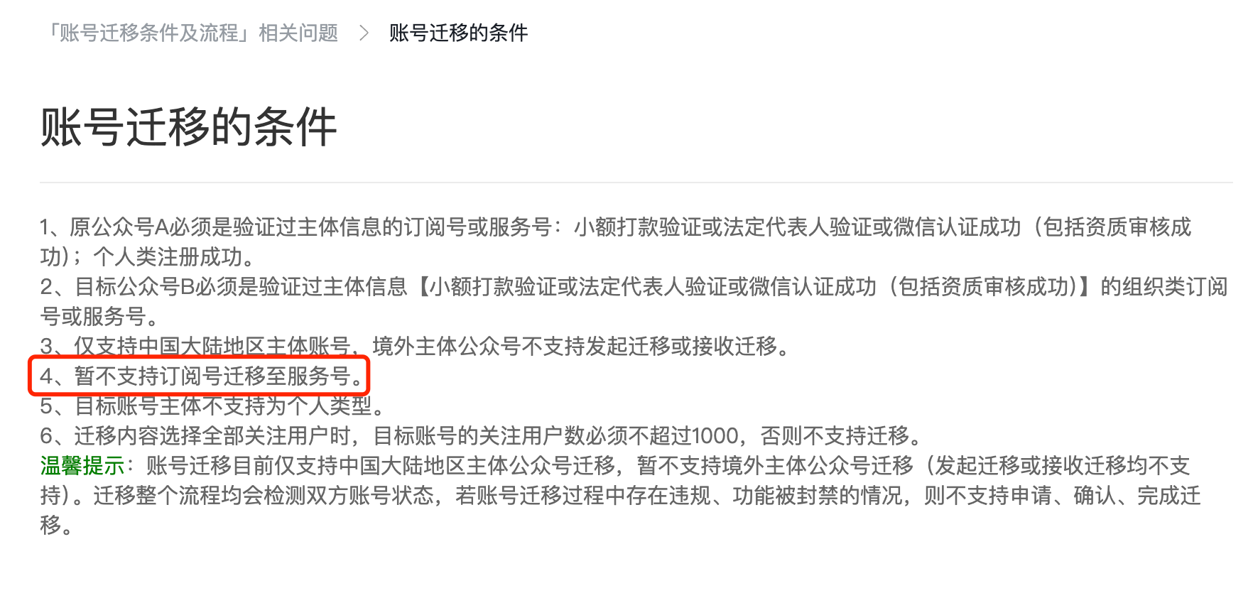 2、目前暂不支持订阅号迁移至服务号。