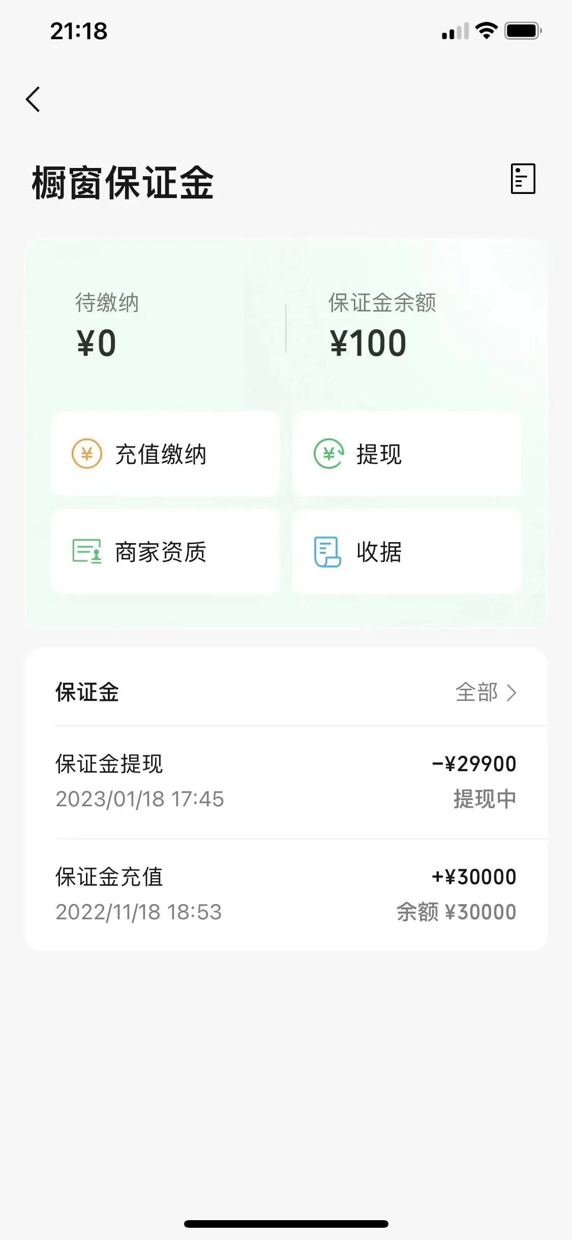 1.18日申请的视频号保证金结余提现一直没有到账, 提现金额原来显示29900现在显示0元?怎么回事?