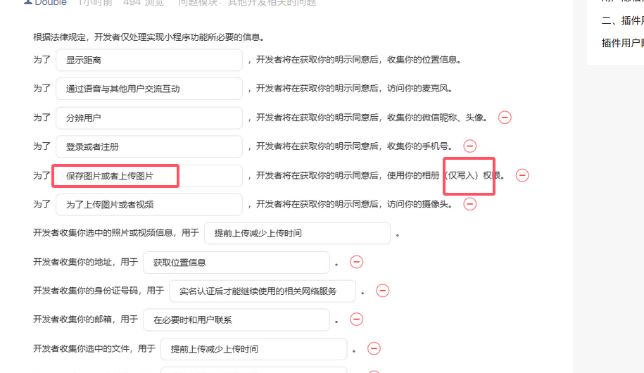 建议自行检查下所填写的描述是否符合对应的隐私接口,特别要注意标有【仅写入】的权限(仅写入,无读取)。