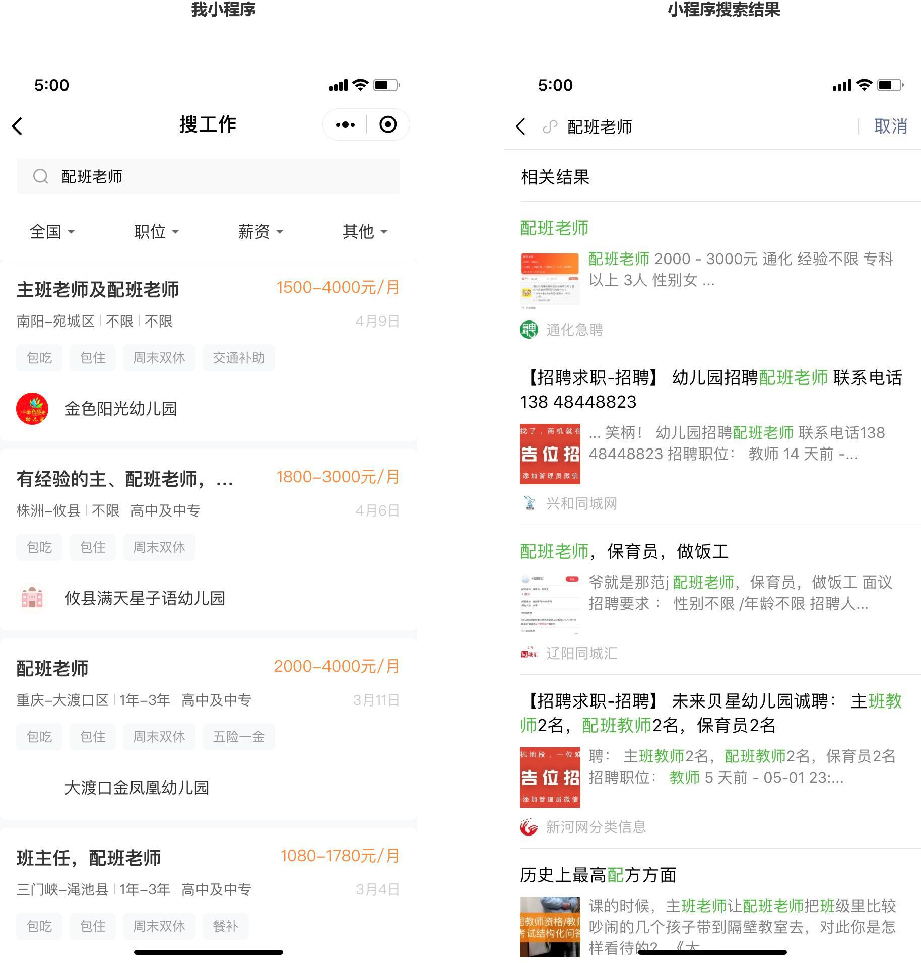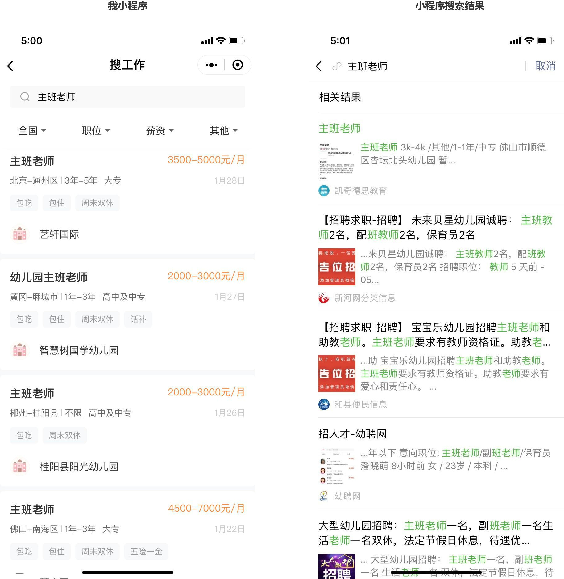 我司招聘求职小程序“园所直聘”上线很久了,搜相关职位关键词一个都搜不到,后台一直都是开着允许收录的,那么多不怎么沾边的内容都能被搜到,我们的能想到的关键词都试了毛都见不到,麻烦帮看下,给个解答,谢谢!