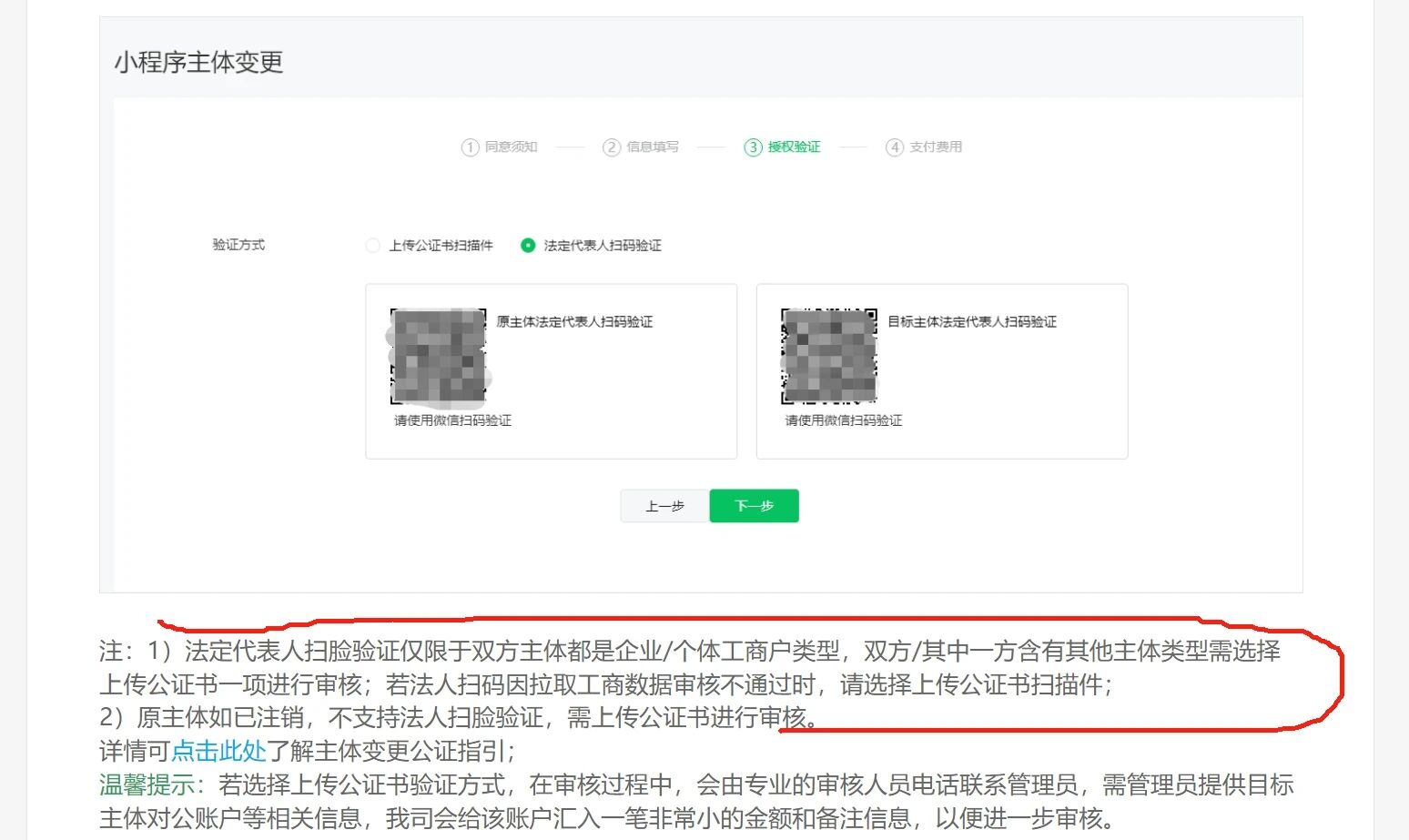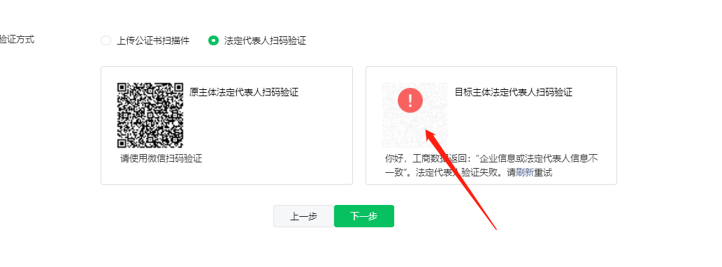 小程序变更主体时目标主体法定代表人扫码验证失败,目标主体是社会团体是否有影响?原主体法人和目标法人两个二维码是否有先后顺序?