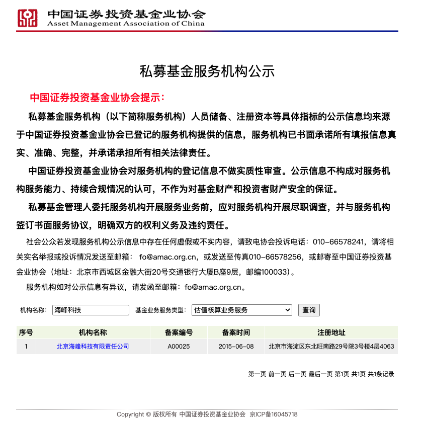 我司是中国证券投资基金业协会已登记的份额登记服务机构、估值核算机构。