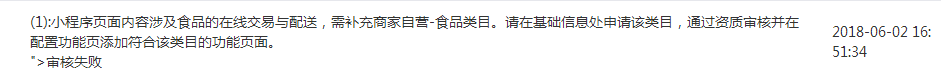 我们小程序是服装商标辅料的,为什么审核不通过的原因是涉及说食品的在线交易与配送