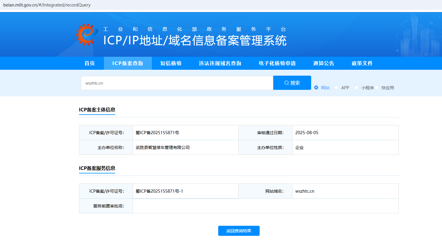 wszhtc.cn,为武胜县智慧停车项目微信扫码支付使用,已完成备案,但微信菜单还是无法访问