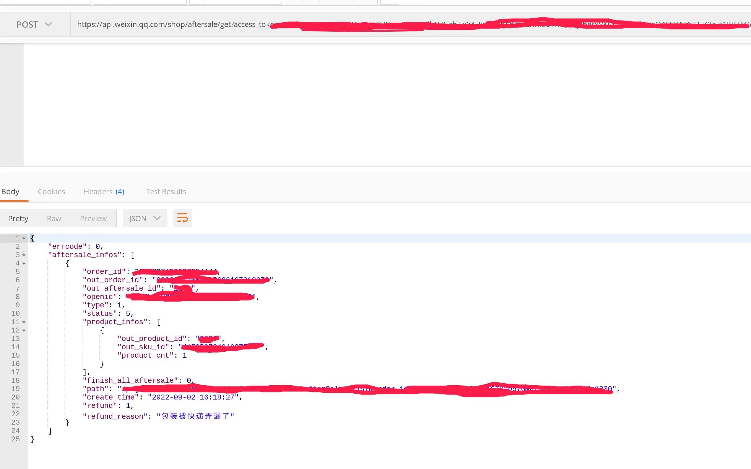 通过文档创建售后接口对接,已成功提交售后,并通过接口可以获得数据(如下图)