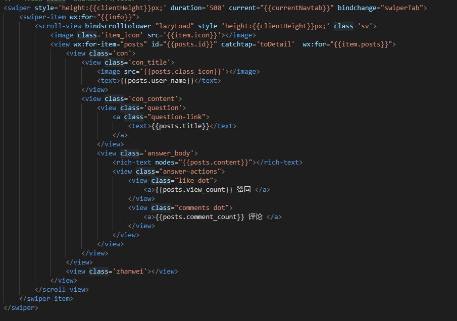 你可以在swiper-item里面加scroll-view,并且给scroll-view一个固定的高度,这样无论你加载多少条他都会在