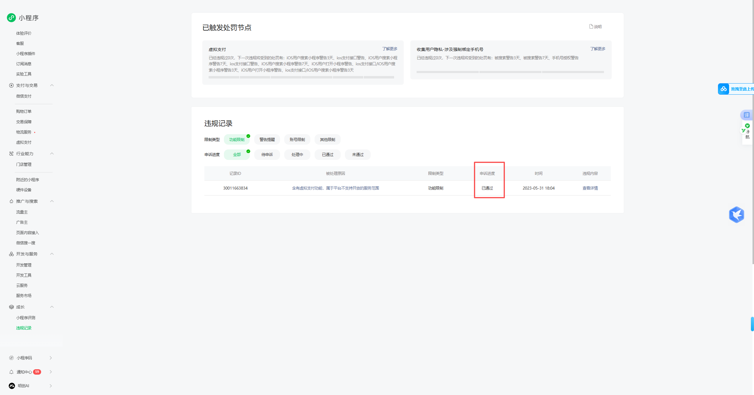 违规的情况已经按照要求完成修改并且申诉通过为什么搜索这里还是小程序涉及违规不给予搜索功能!