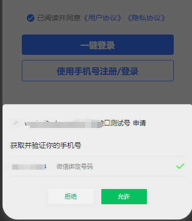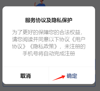 点击一键登录后,判断协议有没有勾选,如果没有勾选,弹出一个提示框,提示框内 如果点击确定,直接勾选上协议,并弹出手机号验证组件,如果取消则不弹出。