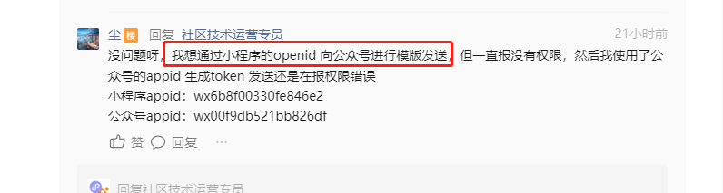 你好,日志687f1167-1cb2c8dc-4bfe294e查看使用第三方代开发小程序调用公众号模板消息接口,没有接口权限报错48001,请使用公众号的token调用公众号的接口