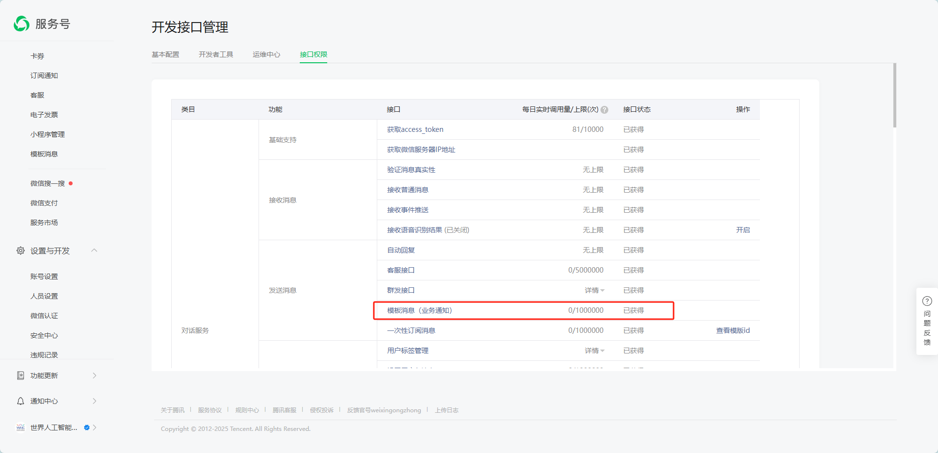 模版消息的接口权限也是开通了的但就是发送不了,一直报错