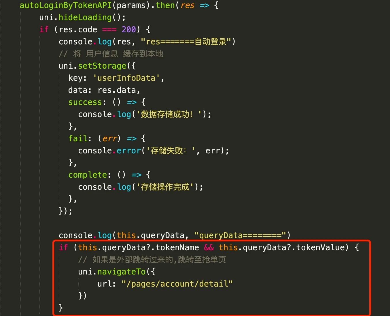 我是在App.vue页面去获取https://wxaurl.cn/XXX 上的参数,并且也是在这个页面判断的是否自动登录,如果没有登录过就先跳转登录,如果登录过了我这里判断了下跳转到detail页面,但是第二次再次点击链接进入小程序的时候,直接跳转到了首页.我看打印的,是进入到了指定的页面,但是又立马跳转到首页去了,这种怎么解决了,有哪位大神可以指教一下