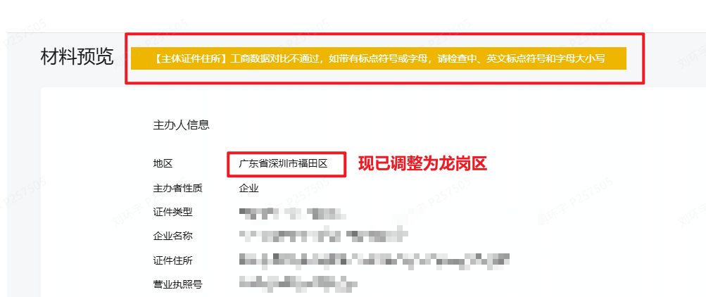 3)若出现工商数据比对报错,建议可私信提供营业执照、完整的主办单位信息【主体地址】界面截图、小程序appid以便核实