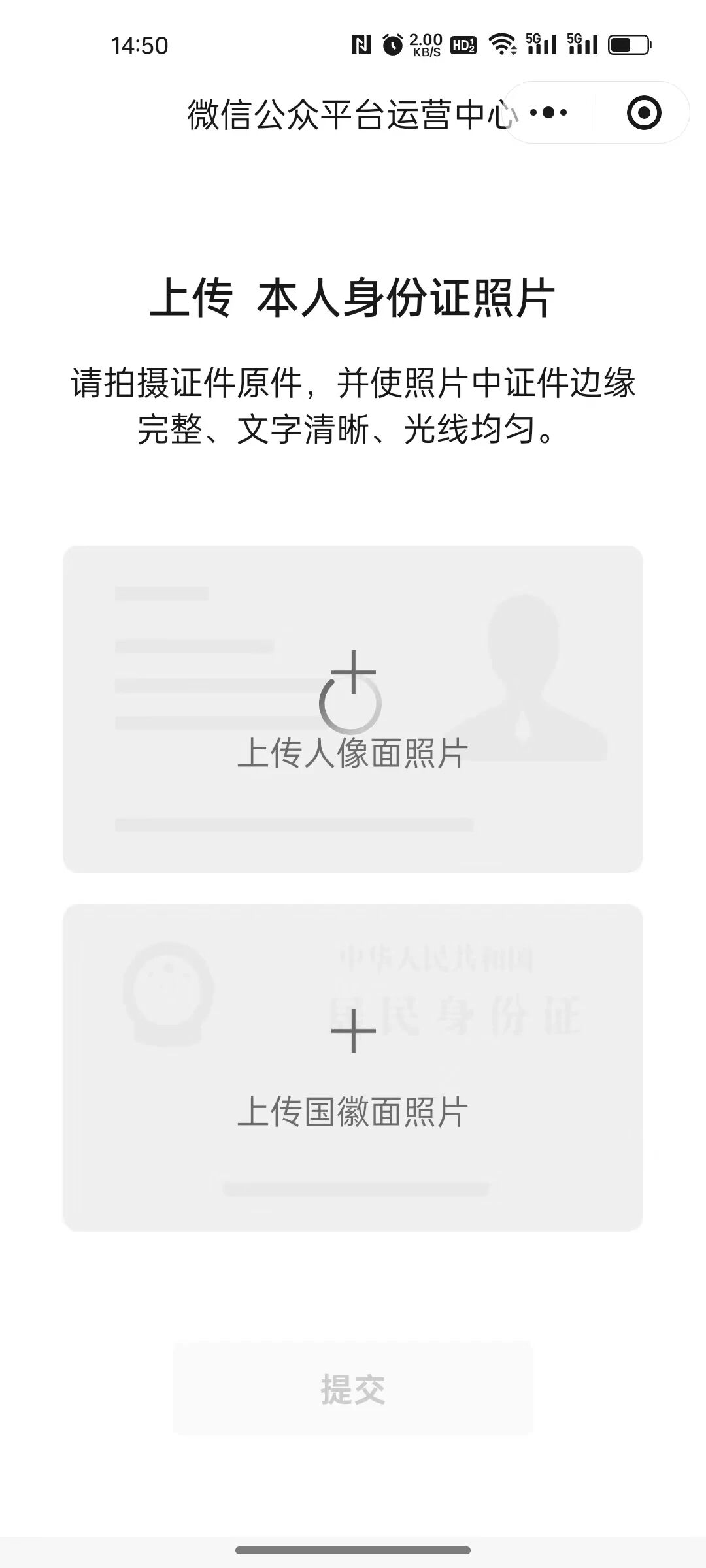 个人小游戏备案已经通过,然后小程序备案时,需要验证备案类型,选择地区后上传身份证,使用手机扫码拍照上传时一直在转圈;