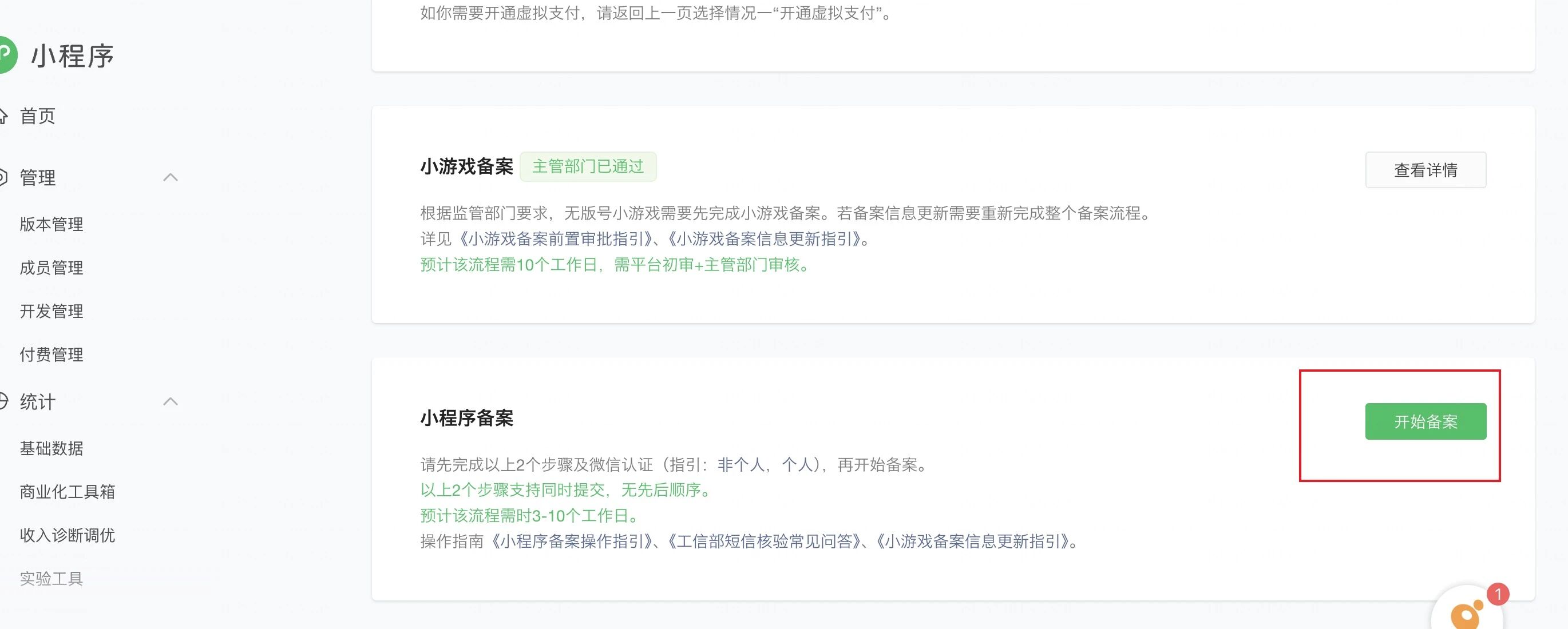 我也是啊,我好几天了,一直都是卡在这里,一开始以为是小程序备案的程序有问题, 但是连续几天了都是这样! 楼主解决了么?