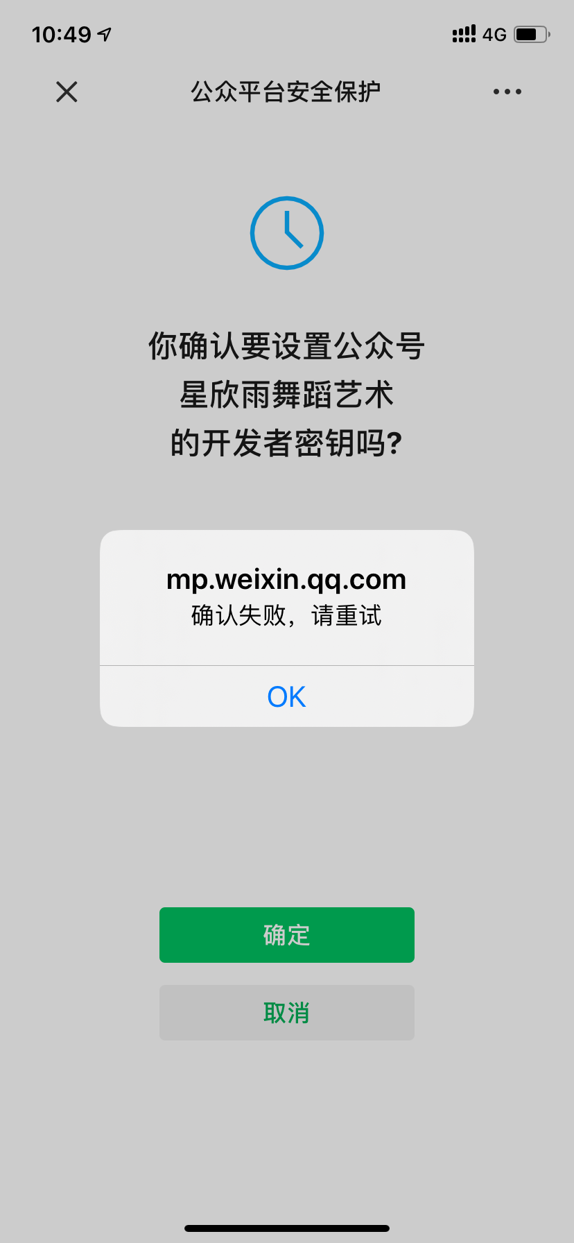 我是在电脑上登入微信公众号后台的,然后电脑上点击重置,发二维码给管理员扫码重置,但是管理员扫码后点了确认,却提示确认失败。合适了一下,管理员账号是对的,没有错。