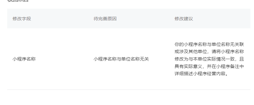 建议参考修改建议修改小程序程序名称后重新提交备案