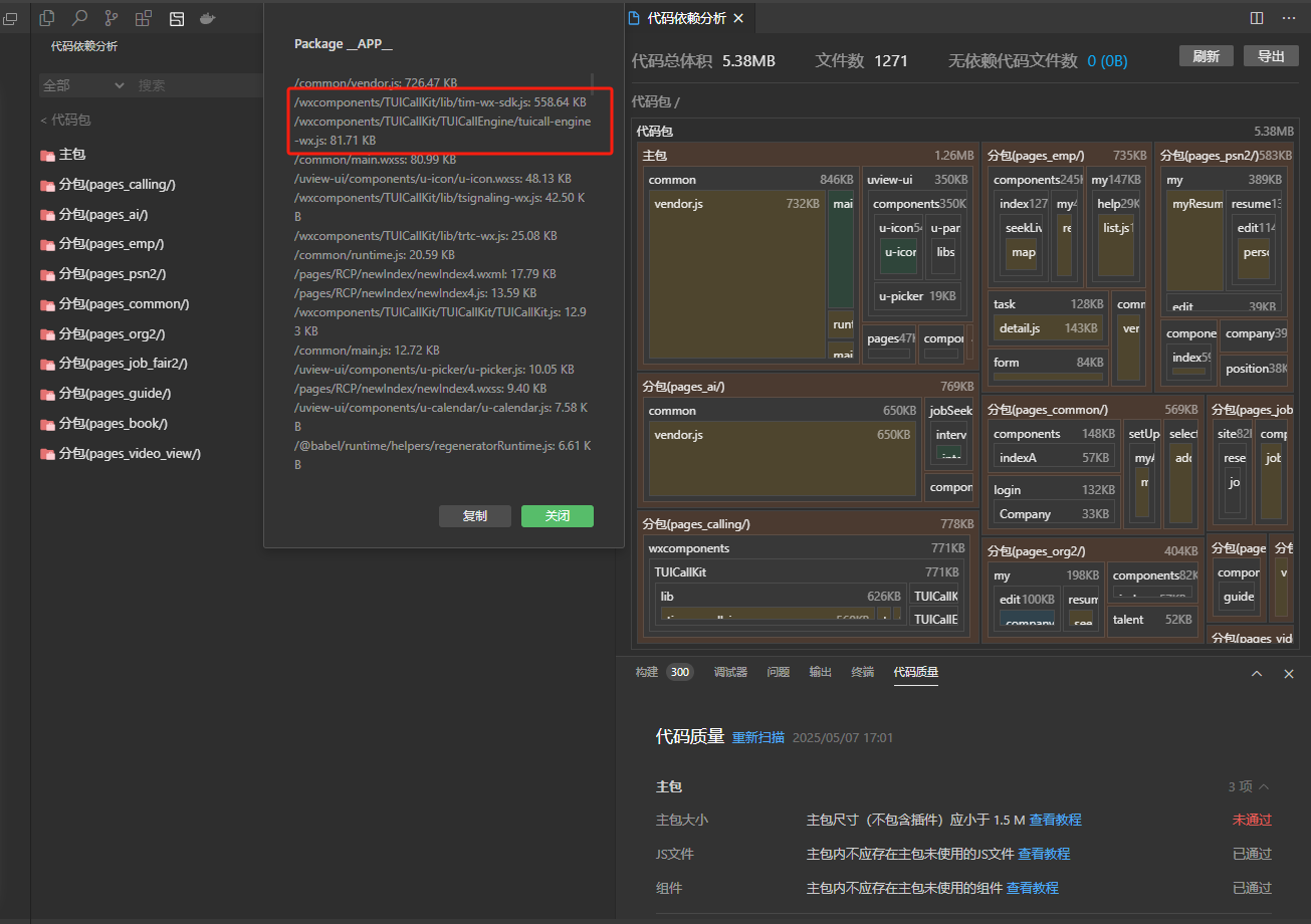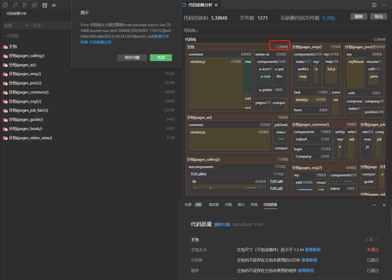 我使用了小程序插件 wxcomponents ,uniapp 打包后,将根目录的wxcomponents 打包进分包,然后手动删除根目录的wxcomponents。此时我再上传 还是提示我包超出大小。实际编辑器已经知道包变小了 但是上传就不行。