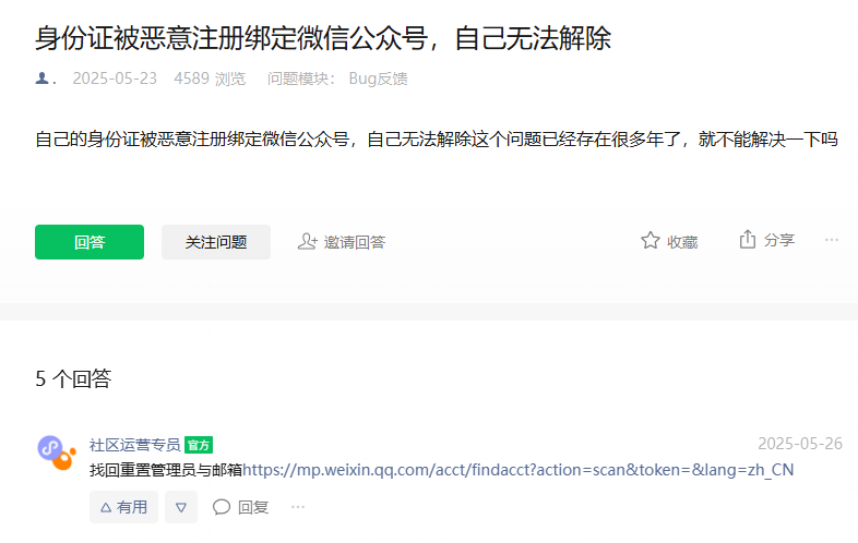 但是我在微信的公众平台安全助手查询"身份证号绑定账号"又提示我的身份证号未绑定公众号