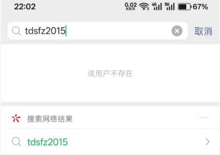 并且搜索上面的微信号tdsfz2015提示用户不存在...
