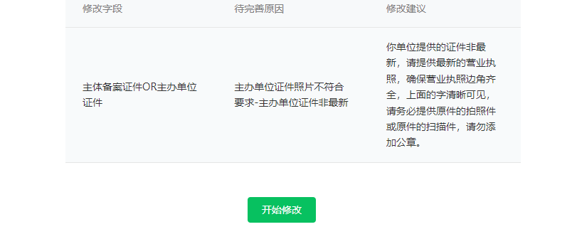 你好,当前订单中提供的主体证件非最新,请提供最新的营业执照,确保营业执照边角齐全,上面的字清晰可见,请务必提供原件的拍照件或原件的扫描件,请勿添加公章,修改后重新提交订单。