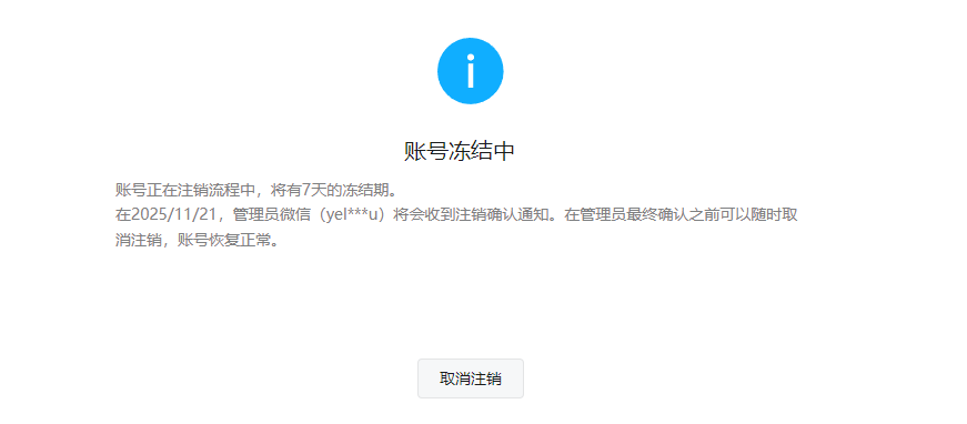我的公众号“gh_243ba65a8870” 今天注销到期,为何还在冻结中,且【公众安全平台助手】服务号中一直没收到注销确认信息?烦请帮忙核查一下,谢谢!