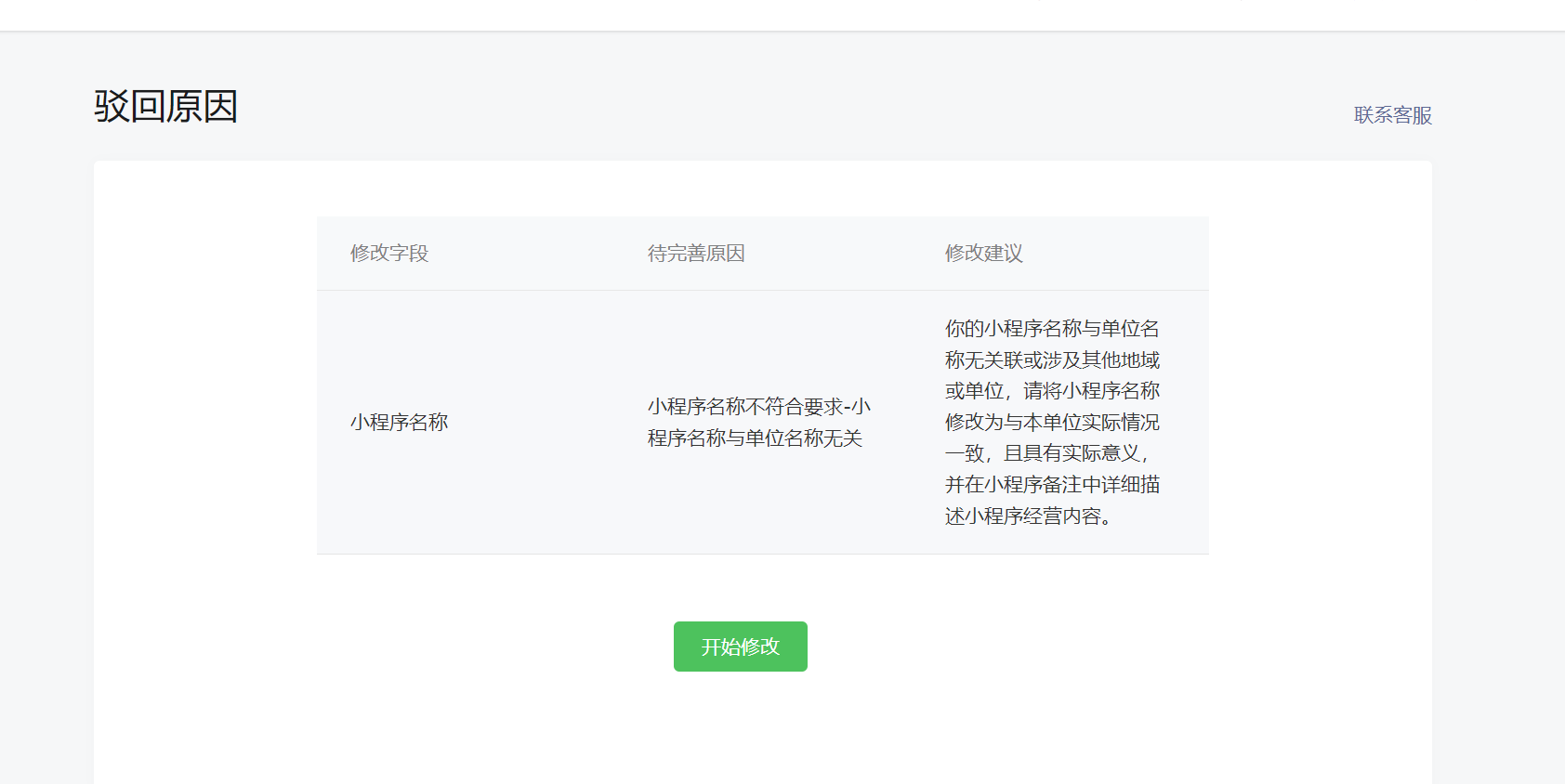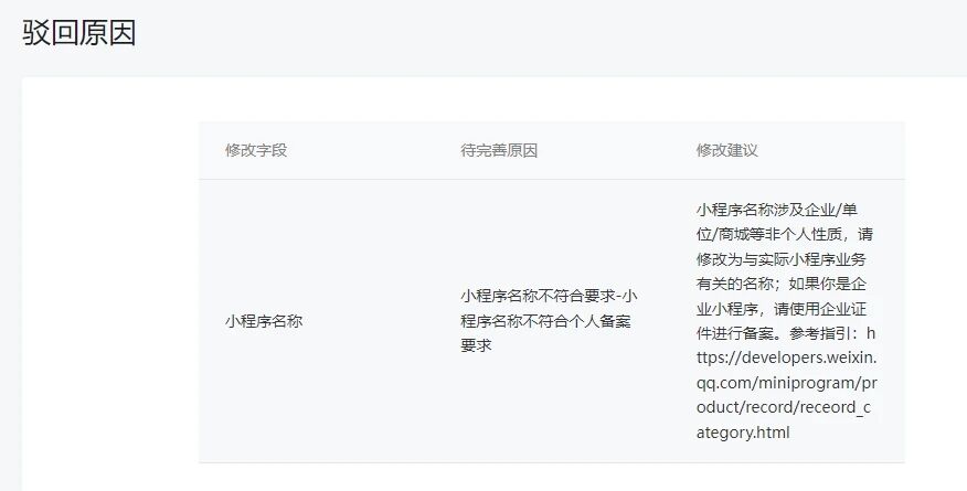 官方驳回,完善信息时也不能修改小程序名称,现在还有一次机会。如果机会用完了,那是不是就不能在备案了?