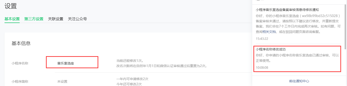 我的个人主体小程序,名字叫 音乐室选座,备案时报因为这个名称被驳回,问题是出在“音乐室”三个字,还是“选座”二字呢? 希望有官方人员能够解答并提些修改建议,本人是学校老师,这个小程序是用于学校让学生在音乐室选座学习使用,修改名称的机会只有一次机会了。