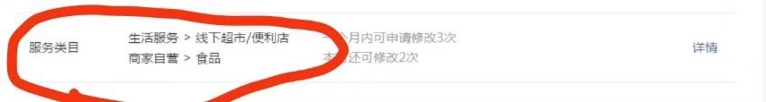 我们申请并审核通过的是食品和线下超市,但是搜索到的下面却显示娱乐,请问怎么更改?