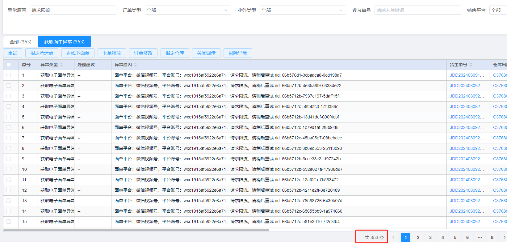 视频号面单取号接口报错:请求限流,单量比较多,请问这种是什么原因?我查了调用额度还比较小305,离标准值2000000差距比较大呢。接口文档地址:https://developers.weixin.qq.com/doc/channels/API/ewaybill/create_order.html