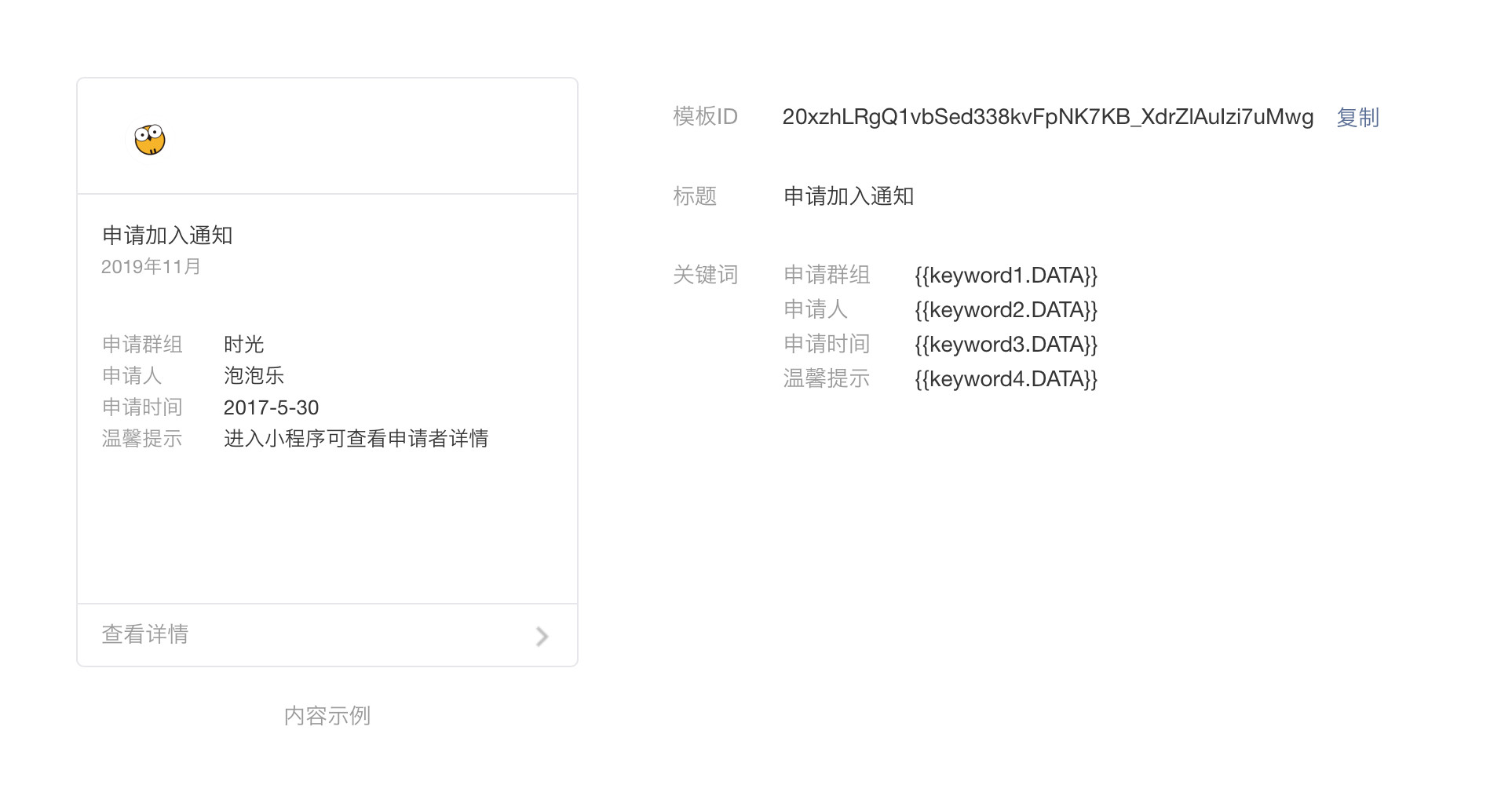 为什么申请加入通知模版里面有温馨提示这个字段,但是我们发出去的消息,前三个字段都有,最后一个“温馨提示”字段没有?