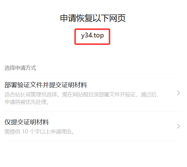 域名y34.top已在工信部备案,SSL证书已部署,浏览器访问显示正常,微信访问提示 ”网页包含游戏、互动测试内容,为维护绿色上网环境,已停止访问。“ 。申诉也还未收到处理提醒。如有技术问题,或需要提交什么材料给官方,请告知,已经全面排查没有任何违规内容的?
