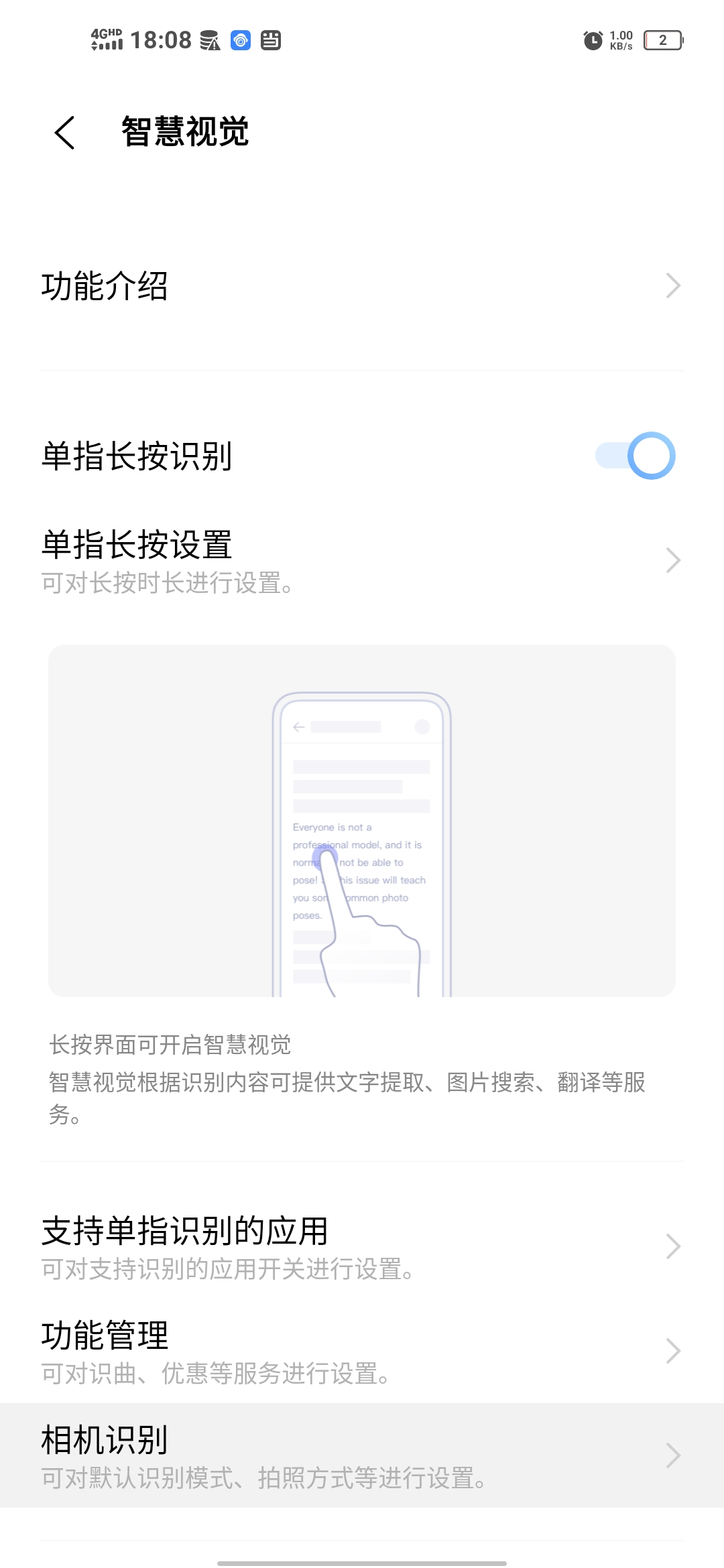 VIVO->智慧视觉->单指长按识别功能开启后,小程序页面内的长按类功能都无响应,具体表现位touch相关事件无反应。
