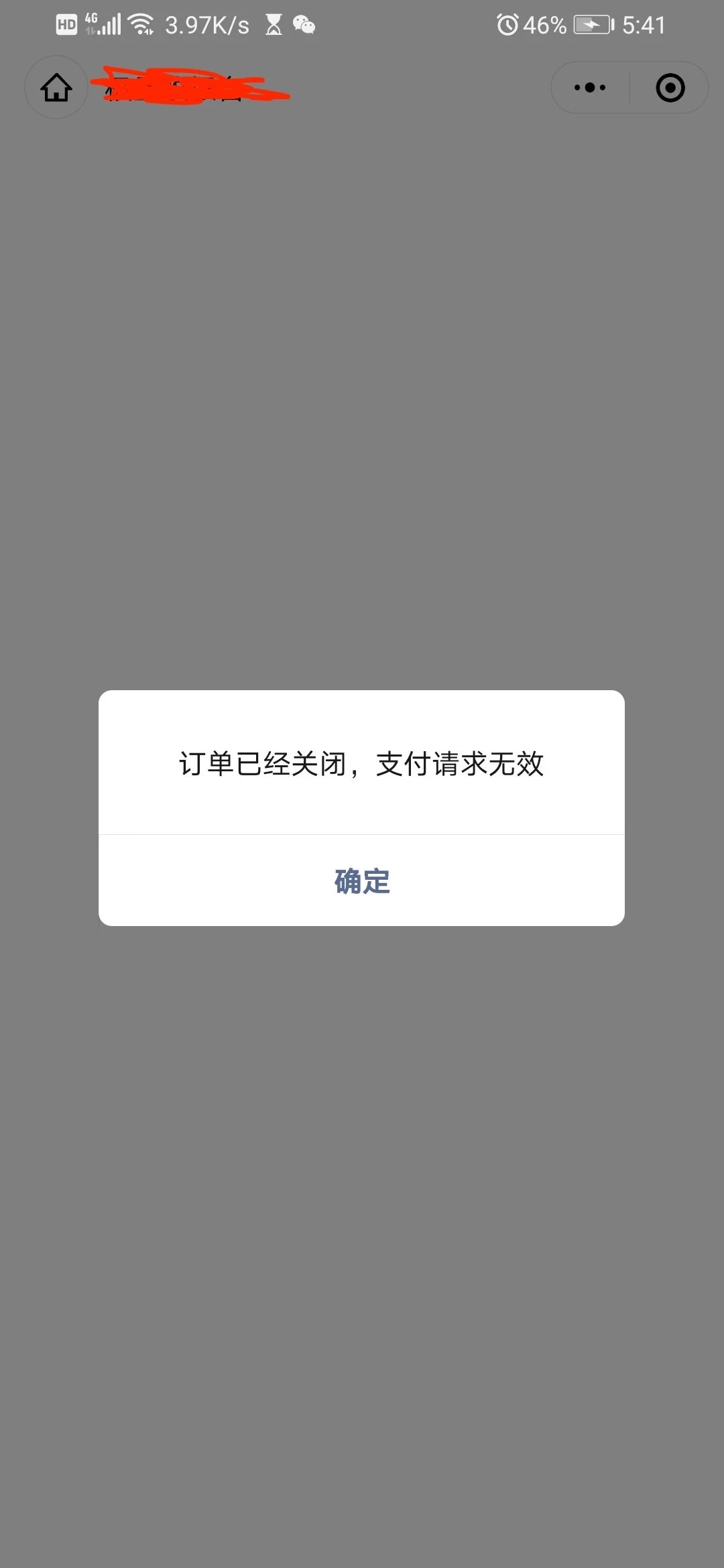 2.系统弹窗显示 “订单已经关闭,支付请求无效” 。