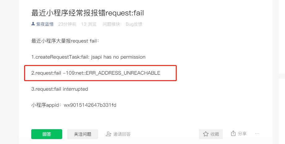 最近小程序大量报request fail: