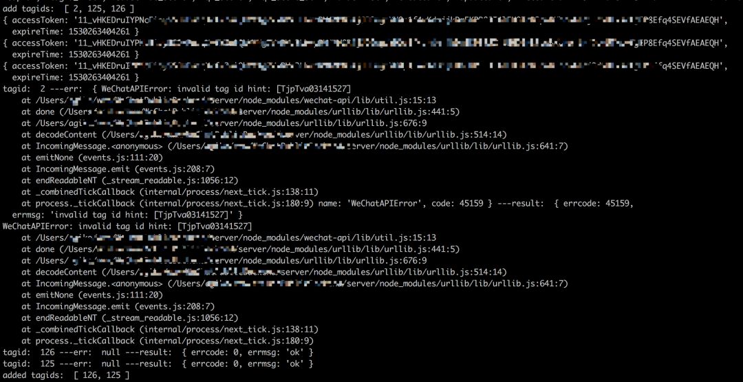 在给同一个用户打多个标签时,其中有一个标签返回了 { errcode: 45159, errmsg: 'invalid tag id hint: [TjpTva03141527]' },可以肯定的是tagid是没有问题。如,给某个用户打上[2, 125, 126]三个标签,为确保这3个标签id是合法的,请看如下截图: