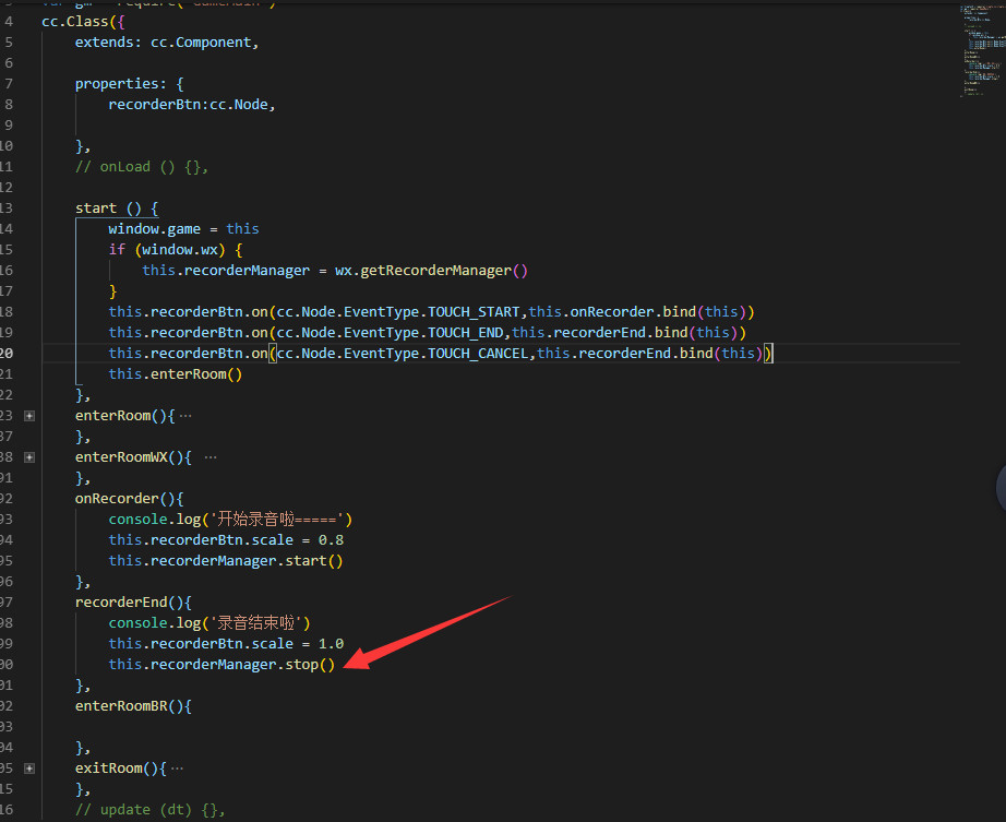 触摸取消的时候stop函数没有效果,打的log出来了显示录音结束但是并没有停止录音