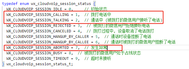 微信sdk不能接收数据,也不能写入数据,接着状态就通话异常 WX_CLOUDVOIP_SESSION_ABORTED = 7, // 发生异常