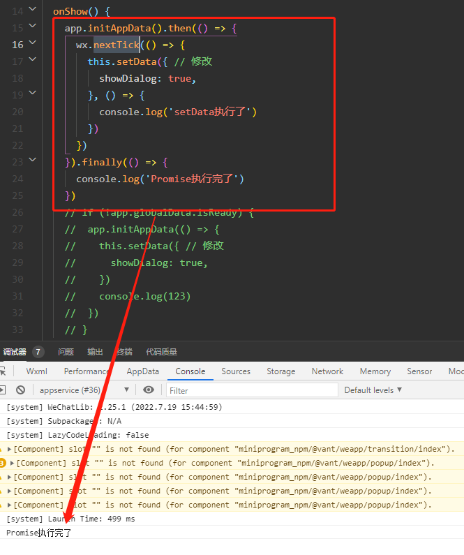 最後,排除了initAppData reject這個問題,看看是否打印了onShow initAppData,如果打印了看看界面是有有改變,沒有的話你還是上傳代碼片段吧