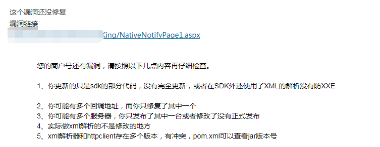 您好,XXE漏洞的问题,请发邮件到以下邮箱解决:wepayTS@tencent.com