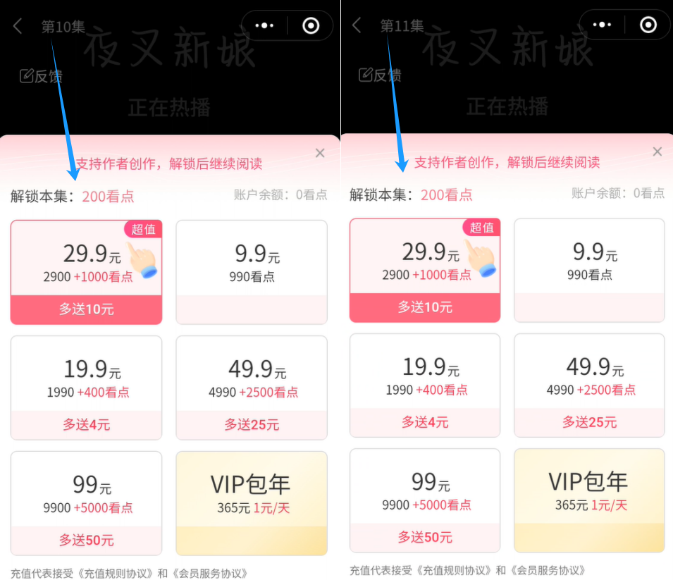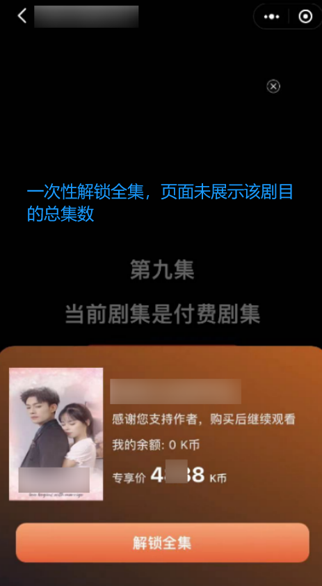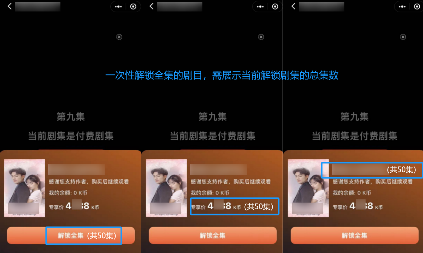 (2)解锁全集,需在付费页面明确告知解锁的剧集总数