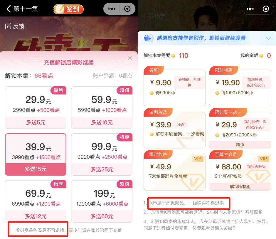 违规案例:付费界面未明确展示单集解锁价格