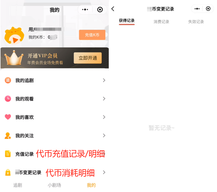 正面案例:提供充值记录及代币消耗明细的查询入口