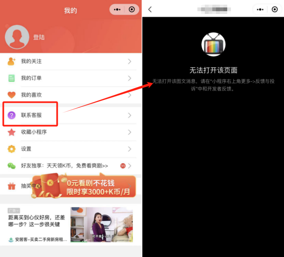 违规案例:入口失效,无法联系客服
