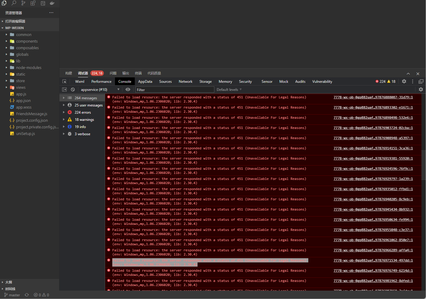 Failed to load resource: the server responded with a status of 451 (Unavailable For Legal Reasons)(env: Windows,mp,1.06.2306020; lib: 2.30.4)